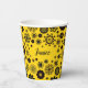 Schwarz-gelbes bohfarbenes Blumenmuster. Diese niedlichen Hippie-Blume machen einen hervorragenden Blume Power-Design mit einem hervorragenden Kontrast. Die Hintergrundfarbe sowie der Text sind anpassbar!