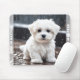 Niedliches Mauspad mit einem bezaubernden maltesischen Wasserfarbenhund im Regen. Ein niedliches personalisiertes kleine Geschenk oder Geburtstagsgeschenk für Kinder und alle Hundefreunde. Personalisieren Sie den Text einfach oder verließ ihn leer. Kate Eden Art