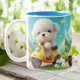 Dieser personalisierte Schlamm verfügt über einen bezaubernden maltesischen weißen Welpenhund, der mit einem lebendigen gelben Roller fährt. Diese Tasse ist das ideale Geschenk für Liebhaber von Haustieren und Hunden und wird Ihnen ein Lächeln und Freude bereiten. Passen Sie ihn mit einem Namen oder einer speziellen Nachricht an, um ihn noch mehr zu erleben. Genießen Sie Ihr Lieblingsgetränk mit dieser charmanten Tasse, die den spielerischen Geist unserer wütenden Freunde einfängt. Ideal für den täglichen Gebrauch oder als nachdenkliches Geschenk ist diese maßgeschneiderte Tasse ein Muss für jeden Hundefreund.