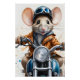 Eine schöne Maus in orangefarbener Jacke für eine Motorradfahrt.