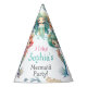 Niedlicher Mermaid Party Hat, bearbeitbarer Text. Super-süße Meerjungfrau Party Hut. Bearbeiten von Alter, Name und Hintergrundfarbe.