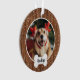 Dieses niedliche Weihnachtsschmuck enthält ein bezauberndes und ästhetisch ansprechendes Design. Dieses Design umfasst einen Holzboden mit Schnee, einen Platz in der Mitte, um ein Foto Ihres Hundes hinzuzufügen, und einen Knochen mit Orten, um den Namen Ihres Hundes und das Jahr hinzuzufügen. Viel Spaß!