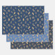Wrap deine Geschenke mit diesem modernen und niedlichen Weihnachts-Weihnachtsgeschenk Geschenkblätter entworfen mit goldenen Weihnachtssocken, Kirschen, Geschenke und Blätter im marineblauen Hintergrund.