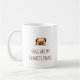 Niedlicher Mops Dog Peeking über Zitat Kaffeetasse