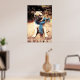 Niedlicher Mops Dog Portrait mit blauem Scarf Poster