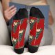 Diese niedlichen Weihnachtssocken des Mops zeigen einen bezaubernden Hund vor einem Weihnachtsbaummuster auf festlichem Rot. Großartige Geschenke für einen Möpsen Liebhaber.