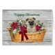 Niedlicher Mops Hund im Korb Weihnachtskarte