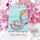 Geschenktafeln am niedlichen Muttertag, die mit einem Elefanten geschmückt sind, der eine Rose auf dem Kofferraum von Mama hält.