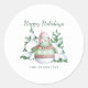 Niedlicher Schneemann-Aufkleber mit dem Text "Happy Holidays." in einem kursiven Schriftart. Personalisiert mit Ihrem Namen oder Familiennamen. Diese Aufkleber sind ideal für Umschlag Aufkleber oder Geschenkverpackungen.
