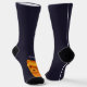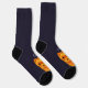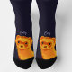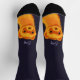 Niedliche, personalisierte Socken mit einer digitalen Abbildung in Gelb, Orange und lila, die eines dieser lieblichen, flauschigen Tiere darstellen, die lachen, dekorative Elemente, Blume und Sterne um sich herum. Es wird ein großartiges Geschenk für eine Frettmutter und einen Fretteliebten.
