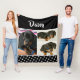Diese niedliche schwarze Decke enthält drei Flecken, um dem bezaubernden Tier und seinem Namen Fotos hinzuzufügen. Fügen Sie Bilder Ihrer Katze oder Ihres Hundes hinzu, und passen Sie sie mit ihrem Namen an. Ein perfektes Geschenk für den Liebhaber des Tieres in Ihrem Leben.