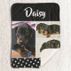 Diese niedliche schwarze Decke enthält drei Flecken, um dem bezaubernden Tier und seinem Namen Fotos hinzuzufügen. Fügen Sie Bilder Ihrer Katze oder Ihres Hundes hinzu, und passen Sie sie mit ihrem Namen an. Ein perfektes Geschenk für den Liebhaber des Tieres in Ihrem Leben.