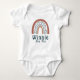 Niedlicher und moderner neutraler Regenbogen im boho-Stil über dem Namen des Babys. Macht ein tolles Baby-Duschgeschenk. Sammlung: Modern Boho Rainbow