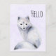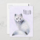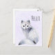 Eine Postkarte mit einem Aquarellbild eines weißen Fuchses mit extravaganter blauer Flora entwirft das ganze Fell.