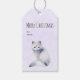 Geschenke Tags mit einem Aquarellbild eines weißen Fuchs mit extravaganten blauen Flora Designs über seinem Fell.