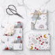 Niedliche nordische Weihnachtshäuser Igel Floral Wrapping Paper enthält 3 verschiedene Muster Häuser, Igel und Winter Blumen in grau und rot auf einem weißen Hintergrund. Von Evco Studio entworfen www.zazzle.com/store/evcostudio
