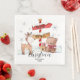 Diese Babydusche-Servietten bieten ein festliches Winterthema. Ein kleines Rentier und ein Bärenkub sitzen im Schnee am Nordpol. Auf einem niedlichen Schild zwischen ihnen steht "Babydusche". Hübsche kleine Schneeflocken fallen über die Tiere.