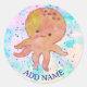Dieser bezaubernde Babytopusaufkleber im Stil eines Cartoon würde Kindern jeden Alters ein exzellentes Geschenk machen. Lebhafte Farben und niedliches Design bringen jedem Kind ein Lächeln. Aquarell in Rosa, Weiß und Blau im Hintergrund. Der Aufkleber ist mit einem lächelnden Babytopus ausgestattet und ist somit die perfekte Ergänzung zu jedem Schulheft, Laptop oder anderen Oberflächen. Ändern des Namens, um ihn anzupassen.