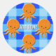 Niedlicher Octopus Cartoon Blau Karierter Individu Runder Aufkleber