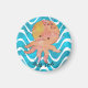 Ein niedlich orangefarbener Cartoon-Oktopus. Das Wasser ist blau und orange. Jungtiermagnete. Text bearbeiten, um ihn anzupassen. Geschenkidee für Kinder.