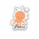 Ein niedlich orangefarbener Cartoon-Oktopus auf blauem Hintergrund. Spezielle Vinyl Aufkleber. Fügen Sie Namen hinzu, um es personalisiert zu machen.