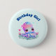 Knopf mit einem Bild eines niedlichen gürteligen Oktopus mit einer Blume auf ihrem Kopf. Große, helle Augen und ein freundliches Gesicht.