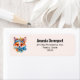 Adressetiketten mit einer Illustration eines bezaubernden Fuchsporträts mit blauen und orangefarbenen Blumenkronen und Kragen.