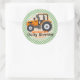 Niedlicher Orangenbaum-Traktor; grüne Karierte Bab Runder Aufkleber