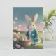 Niedlicher Osterhase mit blauer Jacke Feiertagskarte