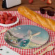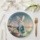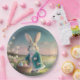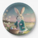 Niedlicher Osterhase mit blauer Jacke Pappteller