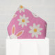 Niedlicher Osterhase mit weißen Blume auf Rosa Seidenpapier