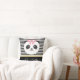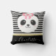 Niedlicher Panda Bär mit rosa Bandkissen. Kawaii Panda Bär mit rosa Wangen, mit einem rosa Blumenband. Schwarz-Weiß Streifen Hintergrund mit goldfarbenem Band. Einfach anpassen und Ihren Namen hinzufügen, um das Kissen zu personalisieren.