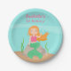 Spielen Sie Ihr Meerjungfrauphantasie-Thema-Party mit diesem niedlichen Meerjungfrau-Party-Papier-Teller aus. Es hat eine Meerjungfrau mit der rosa Spitze, die auf einem Felsen im Ozean sitzt. Groß für Geburtstagsmädchen, die unter dem Meer und den Unterwasserthemen feiern! Fügen Sie Ihre Mitteilung im bereitgestellten Raum hinzu.