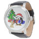 Niedlicher Penguin Santa und Rentierhund Armbanduhr