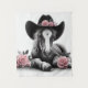 ein hübsches Pferdfohlen mit einem Cowboy-Hut aus Grafit auf weißem Hintergrund mit rosa Rosen