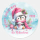 Niedlicher Pinguin Blau und Rosa Custom Frohe Weih Runder Aufkleber