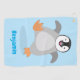 Senden Sie ein fröhliches Hallo aus der Antarktis von einem warmen, flauschigen Pinguin! Dieses niedliche Kaiserpinguin-Küken springt vor Freude. Gezeichnet in lustigen Cartoon Stil.