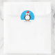 Ein niedlicher schwarz-weißer Pinguin zeichne. Aufkleber für Kleinkinder. Blauer Himmel und Schneeflocken im Hintergrund. Text bearbeiten, um ihn anzupassen. Geschenkidee für Kinder.