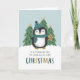 Diese lustige, humorvolle Weihnachtsgrüßkarte ist mit einem handgezogenen Pinguin ausgestattet, der einen Hut und Schal in aquamarinem Blau trägt. Er ist vor einigen Weihnachtsbäumen stehend und hält einen Lebkuchengebäck. Der Text "Auf den Wörtern spielen" lautet: "Es ist Pinguin, viel wie Weihnachten auszusehen." Fügen Sie Ihren Familiennamen vorn hinzu oder verließ, wie es ist - das Innere enthält Vorlagen zur weiteren Personalisierung.