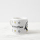 Tasse "Espresso size" für Kinder. Auf dieser Tasse ist ein niedlicher Pinguin mit Sternen. Fügen Sie einen Namen und einen Initial hinzu. Grau und gelb.