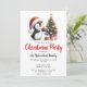 Erschaffen Sie niedliche Weihnachtsfeiertage mit einem fröhlichen Pinguin in einer roten Weihnachtsmannmütze, der einen Weihnachtsbaum schmückt. Diese modernen Weihnachtsladen sind auf weißem Hintergrund gestaltet und die Rückseite ist mit blauen Schneeflocken dekoriert. Mit der Vorlage können Sie den Text für Familienname, Datum und Uhrzeit, Adresse, UAWG und Party-Kleidungscode leicht anpassen. Wenn Sie weitere Änderungen vornehmen möchten, können Sie das Zazzle Designwerkzeug verwenden.