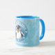 Tasse mit schöner Abbildung eines niedlichen Pinguins. In Typografie steht "Cold Winter's Vibes". Sie können Ihren Namen anpassen! Besuchen Sie unseren Shop für weitere Designs.