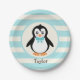 Niedlicher Pinguin mit türkisfarbenem Bowtie Pappteller
