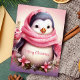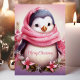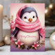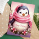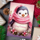 Genießen Sie Ihren Urlaub mit dieser herzhaften Karte mit einem zauberhaften Pinguin, gebündelt in einem rosa Schal, umgeben von festlichen Blume. Die "Frohe Weihnachten"-Nachricht fügt eine süße Touch hinzu, die ideal ist, um Liebenden während der Ferienzeit Beifall zu schenken.