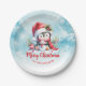 Niedlicher Pinguin Red and Blue Custom Frohe Weihn Pappteller