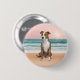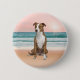 Niedlicher Pitbull Hund sitzend am Strand mit Sonn Button
