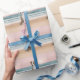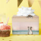 Niedlicher Pitbull Hund sitzend am Strand mit Sonn Geschenkpapier
