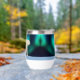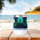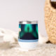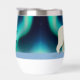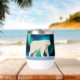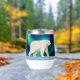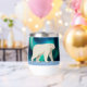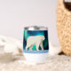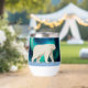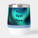 Ein niedlicher Eisbär (Ursus maritimus), in einem einfachen primitiven oder naiven Stil gemacht, geht auf dem Polareis spazieren, die Aurora Borealis (Northern Lights) leuchten hell im Hintergrund. Passen Sie Ihren eigenen Text an.