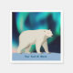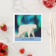 Ein niedlicher Eisbär (Ursus maritimus), in einem einfachen primitiven oder naiven Stil gemacht, geht auf dem Polareis spazieren, die Aurora Borealis (Northern Lights) leuchten hell im Hintergrund. Passen Sie Ihren eigenen Text an.