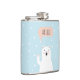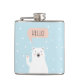 Niedlicher polarer Bär im Schnee sagt hallo Flachmann